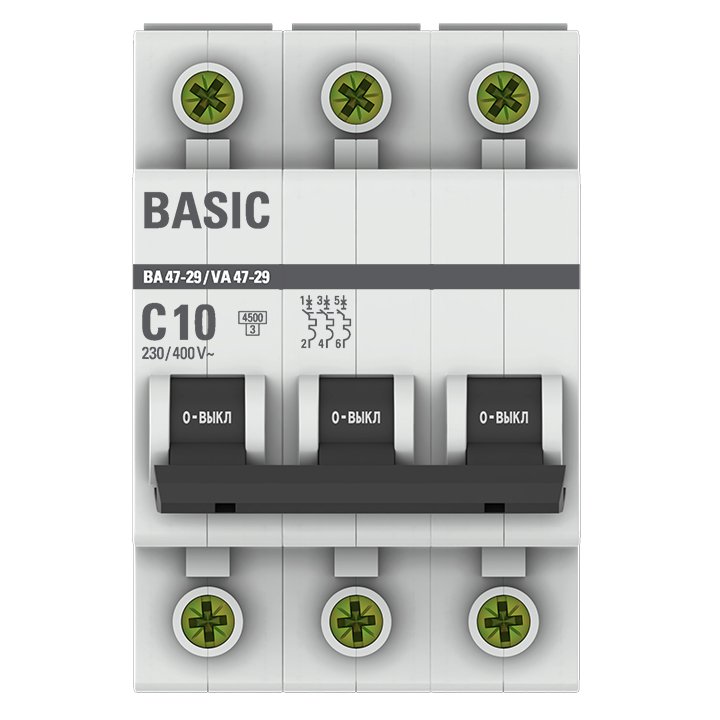 —EKF Basic ВА 47-29 Автоматический выключатель (С) 3P 10А 4,5кА, арт mcb4729-3-10C