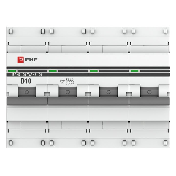 —EKF PROxima ВА 47-100 Автоматический выключатель (D) 4P 10А 10kA, арт mcb47100-4-10D-pro