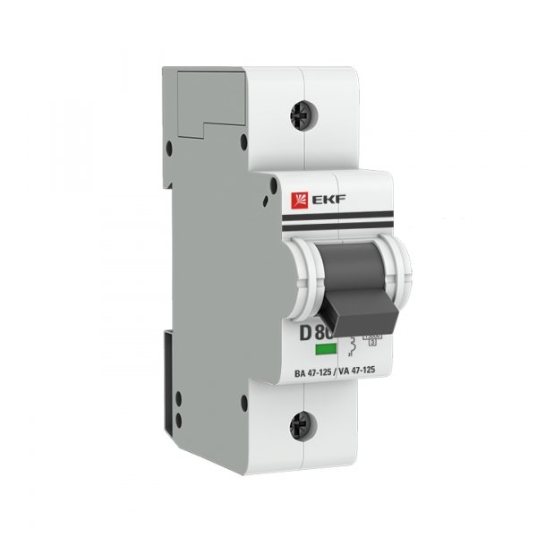 —EKF PROxima ВА 47-125 Автоматический выключатель (D) 1P 80А 15кА, арт mcb47125-1-80D