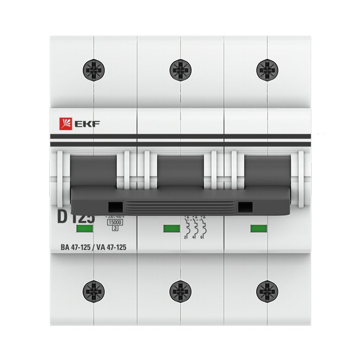 —EKF PROxima ВА 47-125 Автоматический выключатель (D) 3P 125А 15кА, арт mcb47125-3-125D