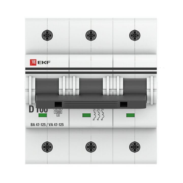 —EKF PROxima ВА 47-125 Автоматический выключатель (С) 3P 100А 15кА, арт mcb47125-3-100C