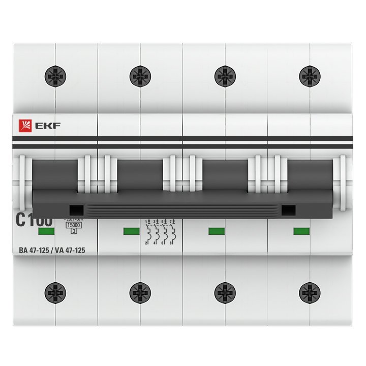 —EKF PROxima ВА 47-125 Автоматический выключатель (С) 4P 100А 15кА, арт mcb47125-4-100C