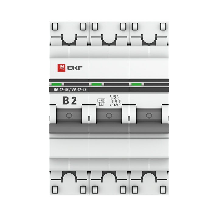 —EKF PROxima ВА 47-63 Автоматический выключатель (B) 3P 2А 4,5kA, арт mcb4763-3-02B-pro