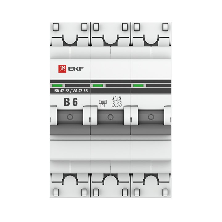—EKF PROxima ВА 47-63 Автоматический выключатель (B) 3P 6А 4,5kA, арт mcb4763-3-06B-pro