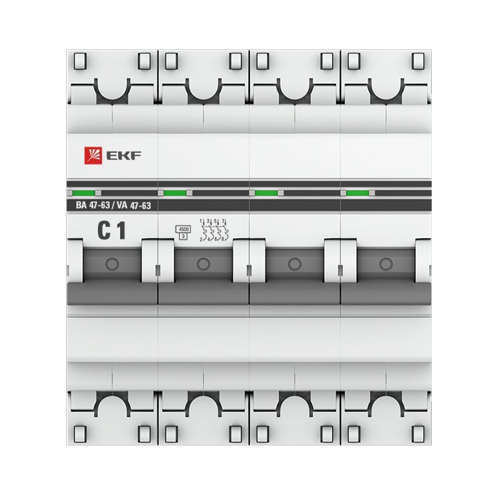 —EKF PROxima ВА 47-63 Автоматический выключатель (С) 4P 1А 4,5kA, арт mcb4763-4-01C-pro