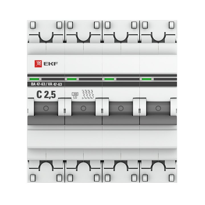 —EKF PROxima ВА 47-63 Автоматический выключатель (С) 4P 2,5А 4,5kA, арт mcb4763-4-2.5C-pro