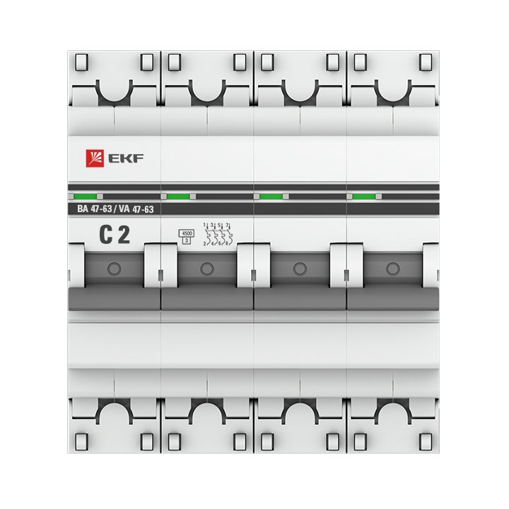 —EKF PROxima ВА 47-63 Автоматический выключатель (С) 4P 2А 4,5kA, арт mcb4763-4-02C-pro
