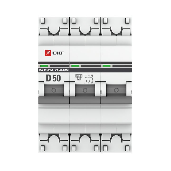 —EKF PROxima ВА 47-63M Автоматический выключатель (D) 3P 50А 6кА с электромагнитным расцепителем, арт mcb4763m-6-3-50D-pro