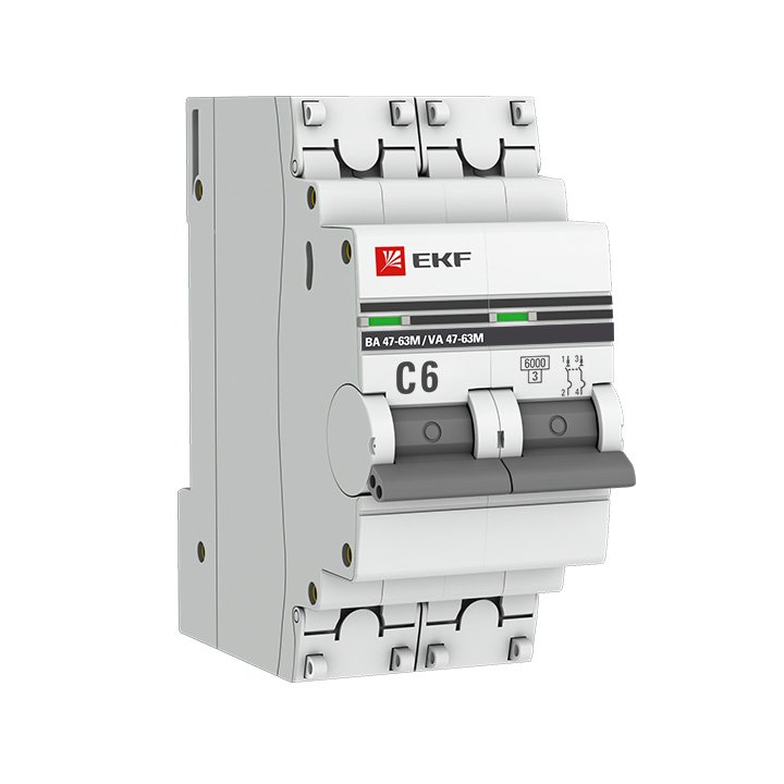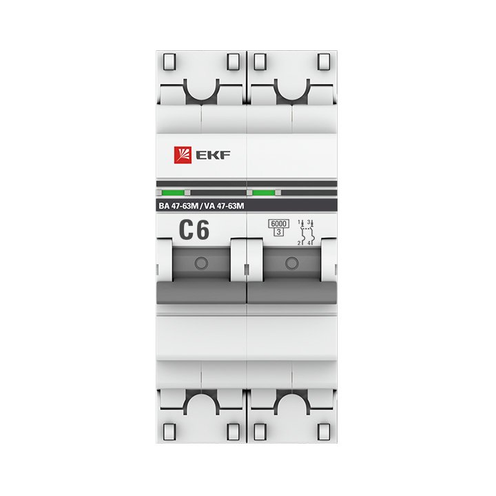 —EKF PROxima ВА 47-63M Автоматический выключатель (С) 2P 6А 6кА с электромагнитным расцепителем, арт mcb4763m-6-2-6C-pro