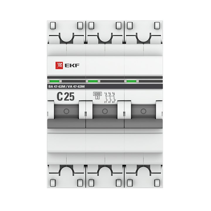—EKF PROxima ВА 47-63M Автоматический выключатель (С) 3P 25А 6кА с электромагнитным расцепителем, арт mcb4763m-6-3-25C-pro