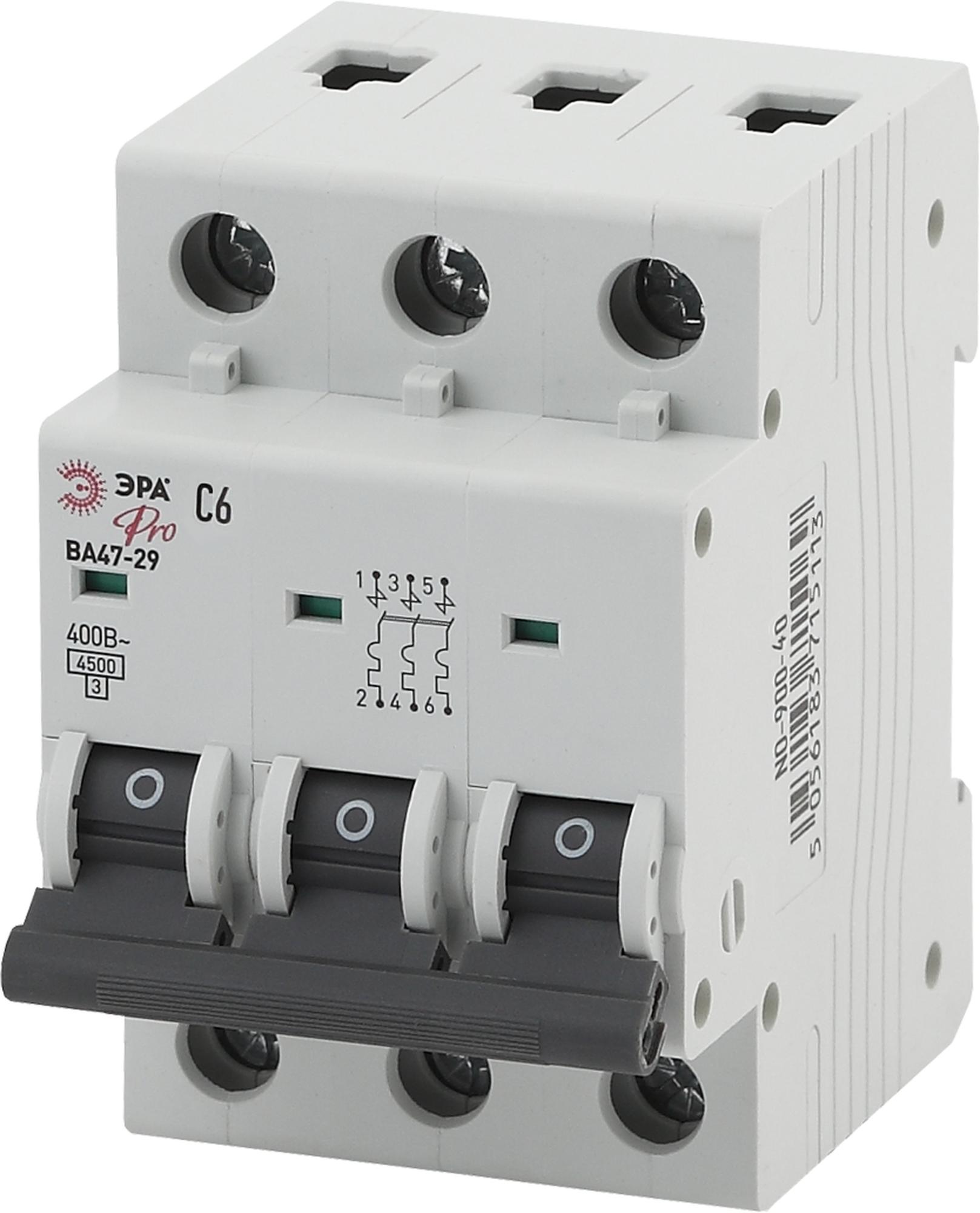 —ЭРА NO-900-40 Pro Автоматический выключатель ВА47-29 3P 6А кривая C, арт Б0031772