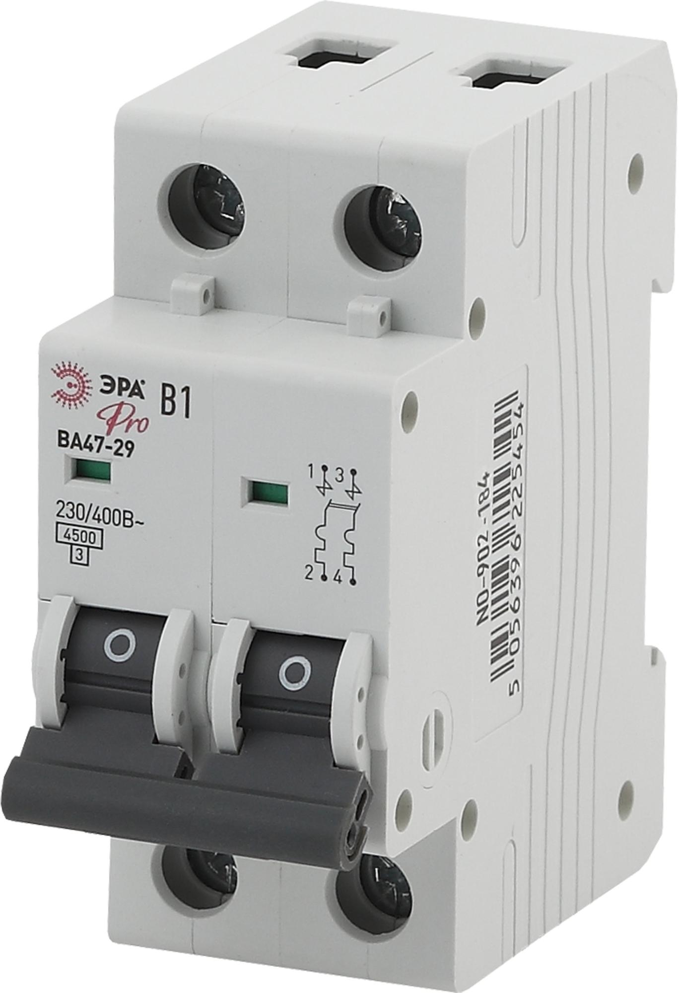 ЭРА NO-902-184 Pro Автоматический выключатель ВА47-29 2Р 1А 4,5кА кривая В (6/90/1890), арт Б0048774
