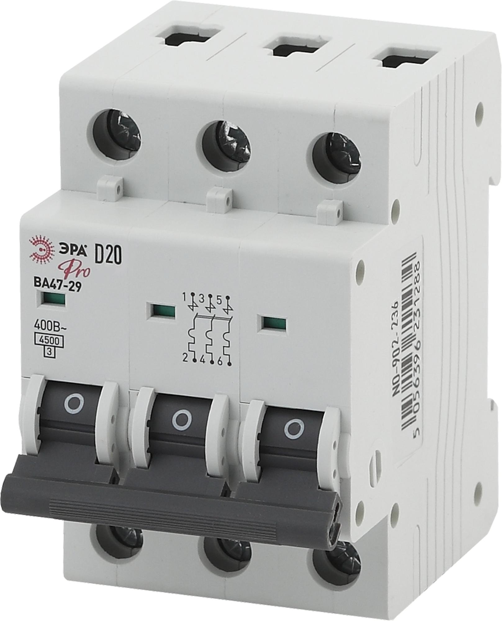 ЭРА NO-902-236 Pro Автоматический выключатель ВА47-29 3Р 20А 4,5кА кривая D (4/60/1260), арт Б0048826