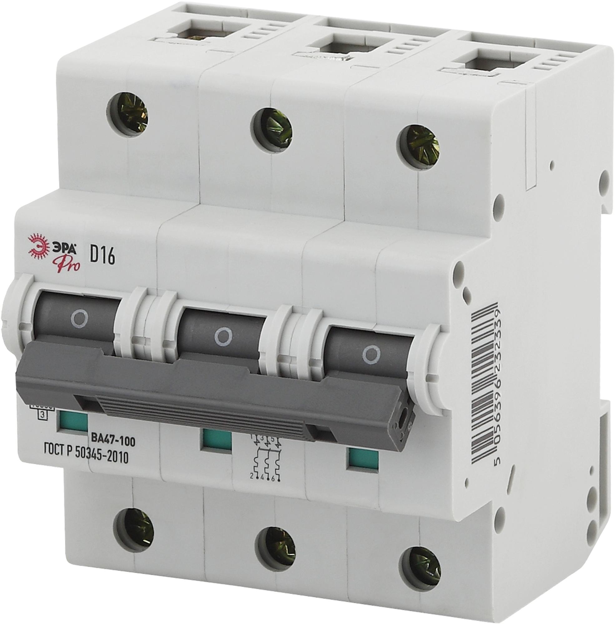 ЭРА NO-902-285 Pro Автоматический выключатель ВА47-100 3Р 16А 10кА кривая D (4/40/960), арт Б0048875