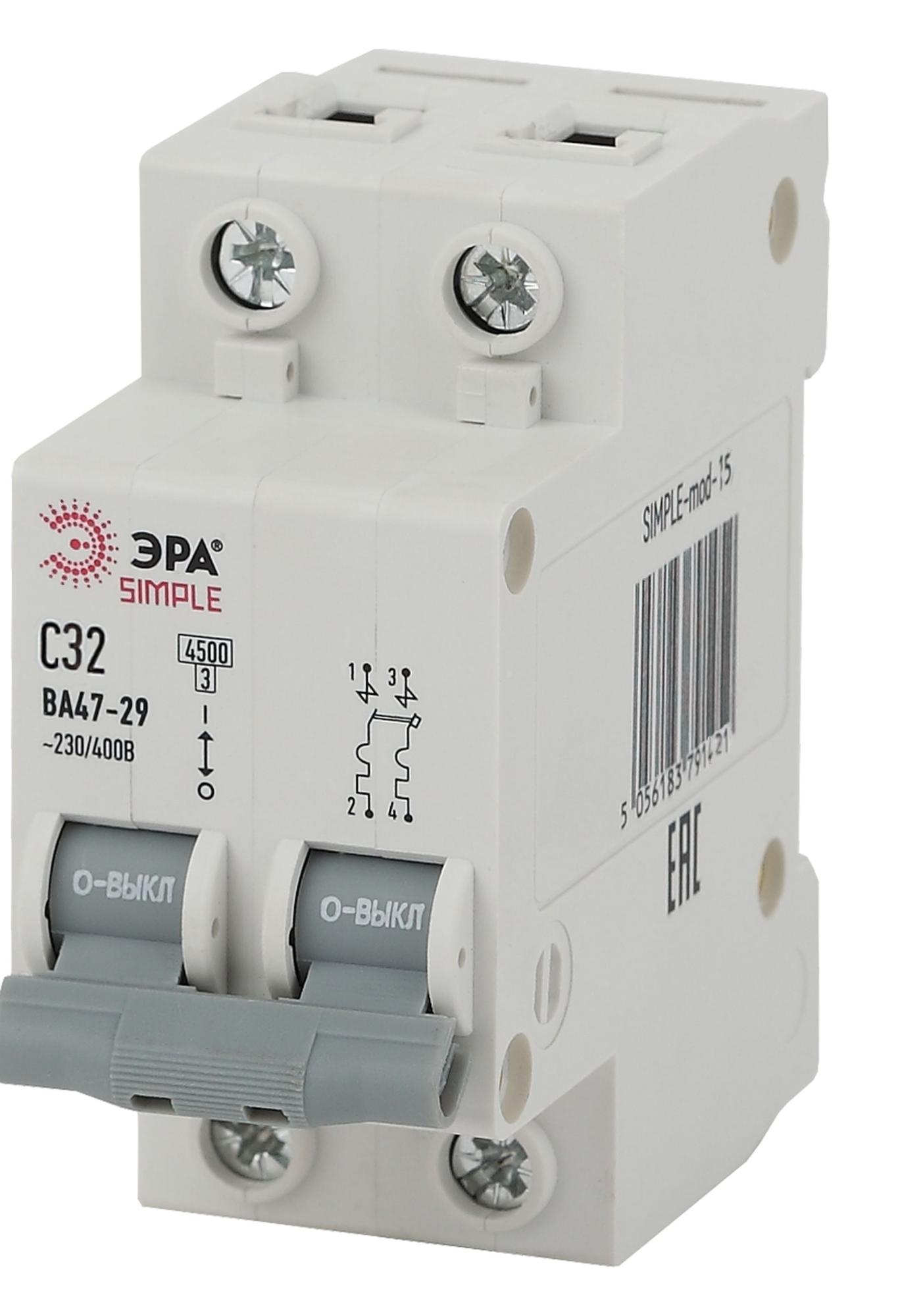 —ЭРА SIMPLE-mod-15 SIMPLE Автоматический выключатель 2P 32А (C) 4,5кА ВА 47-29, арт Б0039232