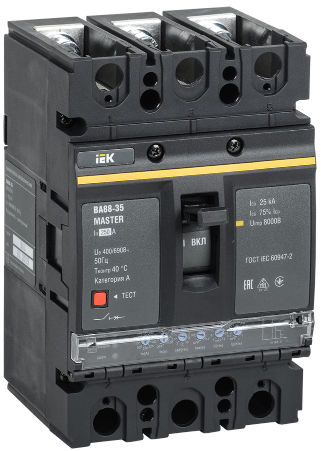 Автоматический выключатель в литом корпусе ВА88 MASTER предназначен для защиты электрических сетей от токов короткого замыкания, токов перегрузки, недопустимых снижений напряжения, а также для проведения тока в нормальном режиме.
