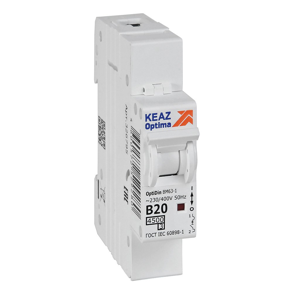 —КЭАЗ OptiDin BM63 Автоматический выключатель 1P 20А B 4,5кА AC (BM63-1B20-4,5-УХЛ3), арт 329502