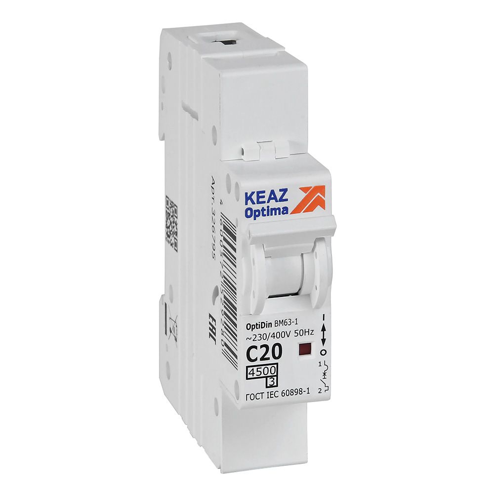 КЭАЗ OptiDin BM63 Автоматический выключатель 1P 20А C 4,5кА AC (BM63-1C20-4,5-УХЛ3)