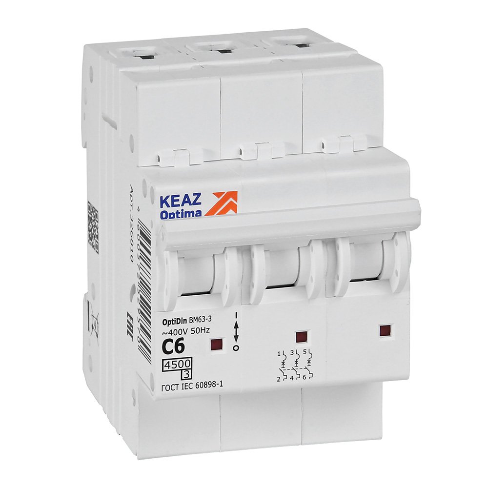 —КЭАЗ OptiDin BM63 Автоматический выключатель 3P 6А C 4,5кА AC (BM63-3C6-4,5-УХЛ3), арт 326810
