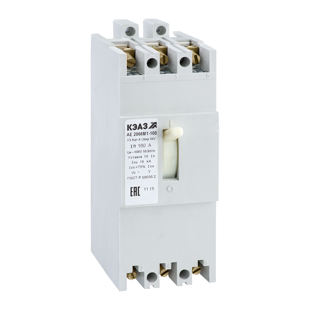 Блочный автоматический 3 полюсный выключатель переменного тока с предельной коммутационной способностью при переменном токе 10 кА на номинальный ток 160 А .
