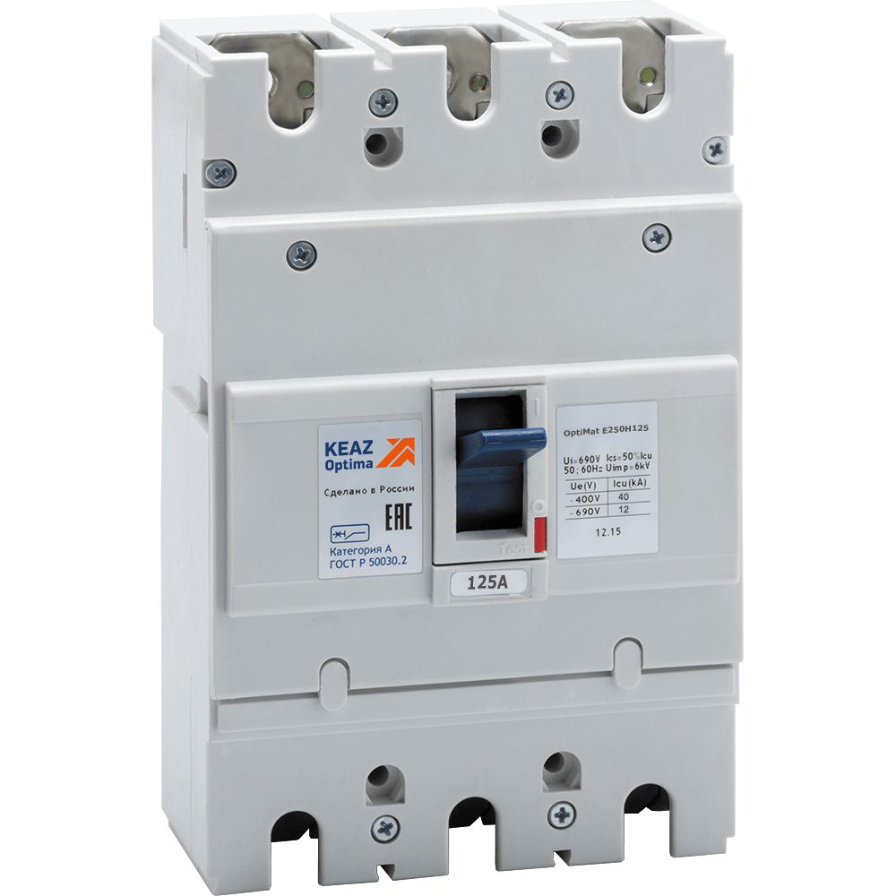 Блочный автоматический 3 полюсный выключатель переменного тока с предельной коммутационной способностью при переменном токе 40 кА на номинальный ток 125 А .