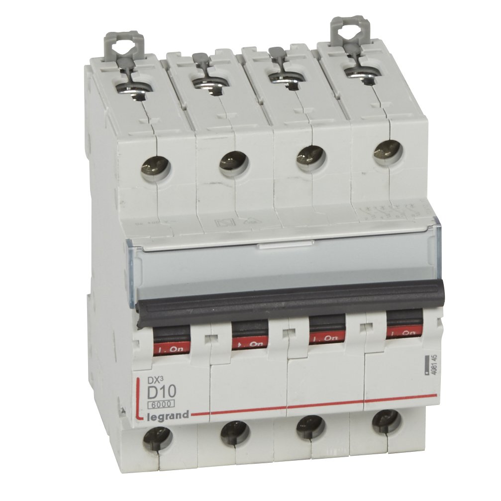 —Legrand DX3 6000 Автоматический выключатель 10кА 4P 400В 10А 4 мод (D), арт 408145