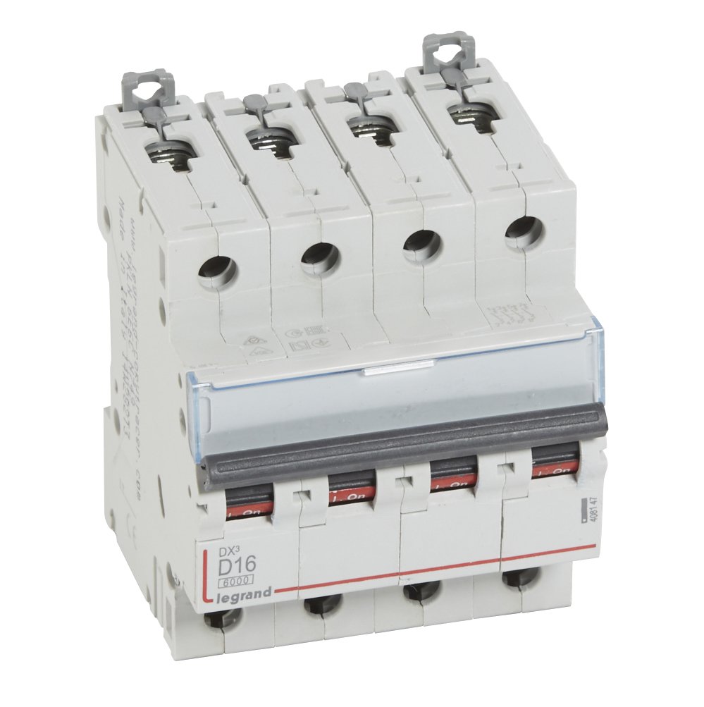 —Legrand DX3 6000 Автоматический выключатель 10кА 4P 400В 16А 4 мод (D), арт 408147