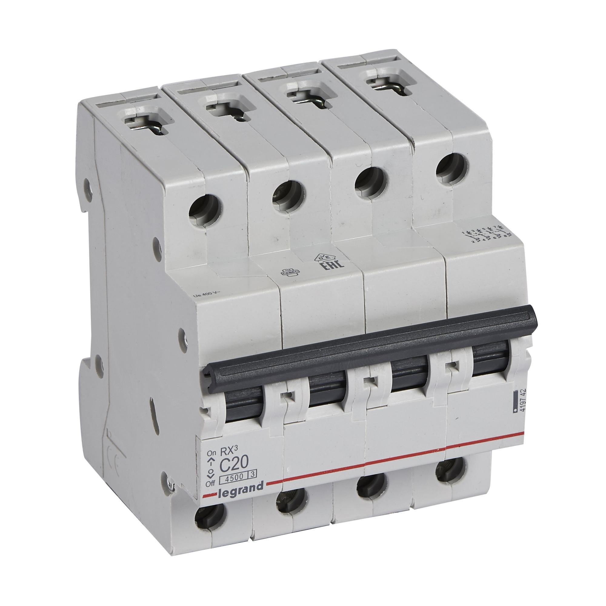 Legrand RX3 Автоматический выключатель 4P 20А (C) 4,5kA от производителя Legrand. Артикул производителя 419742.