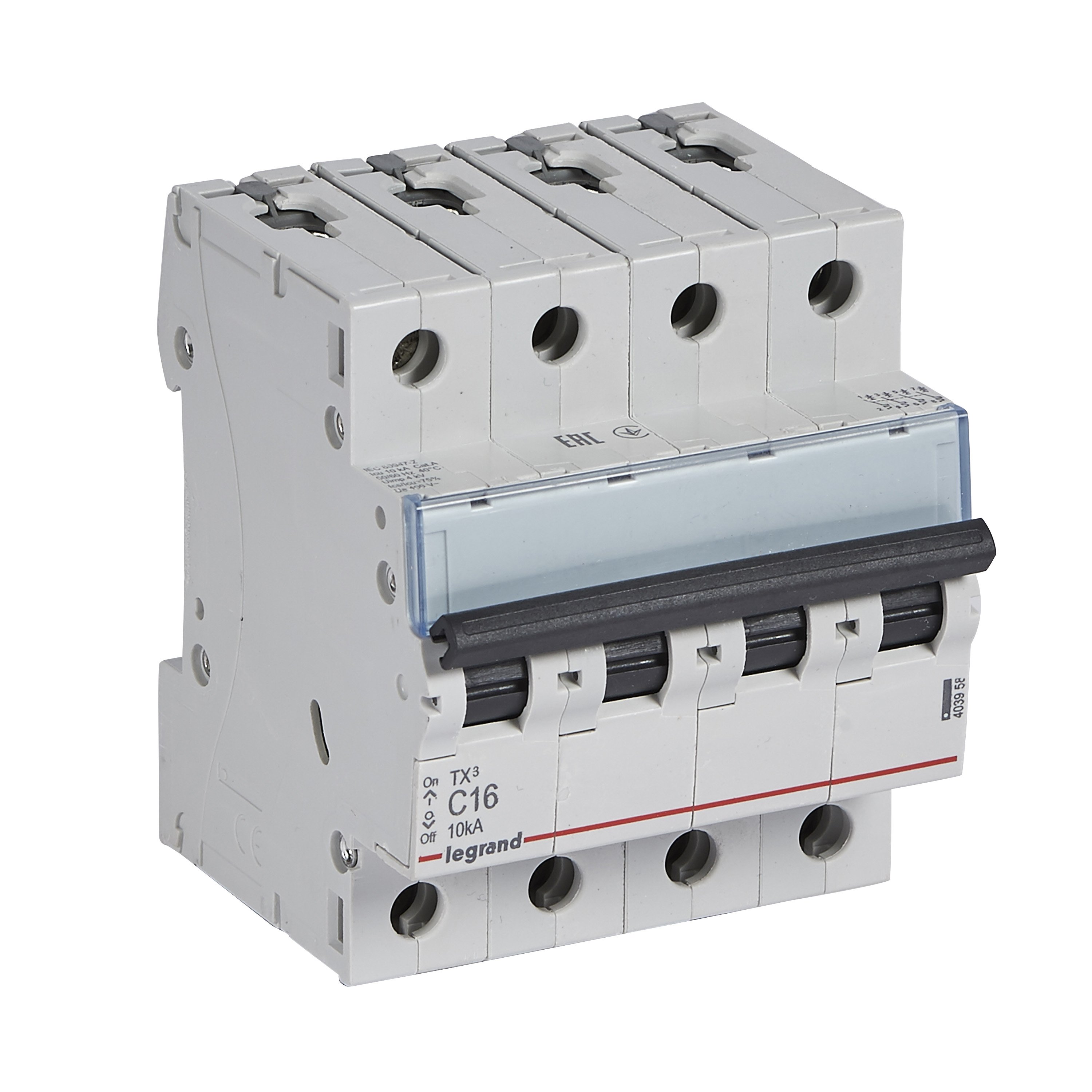 Legrand TX3 Автоматический выключатель 4P 16A (С) 6000/10kA от производителя Legrand. Артикул производителя 403958.