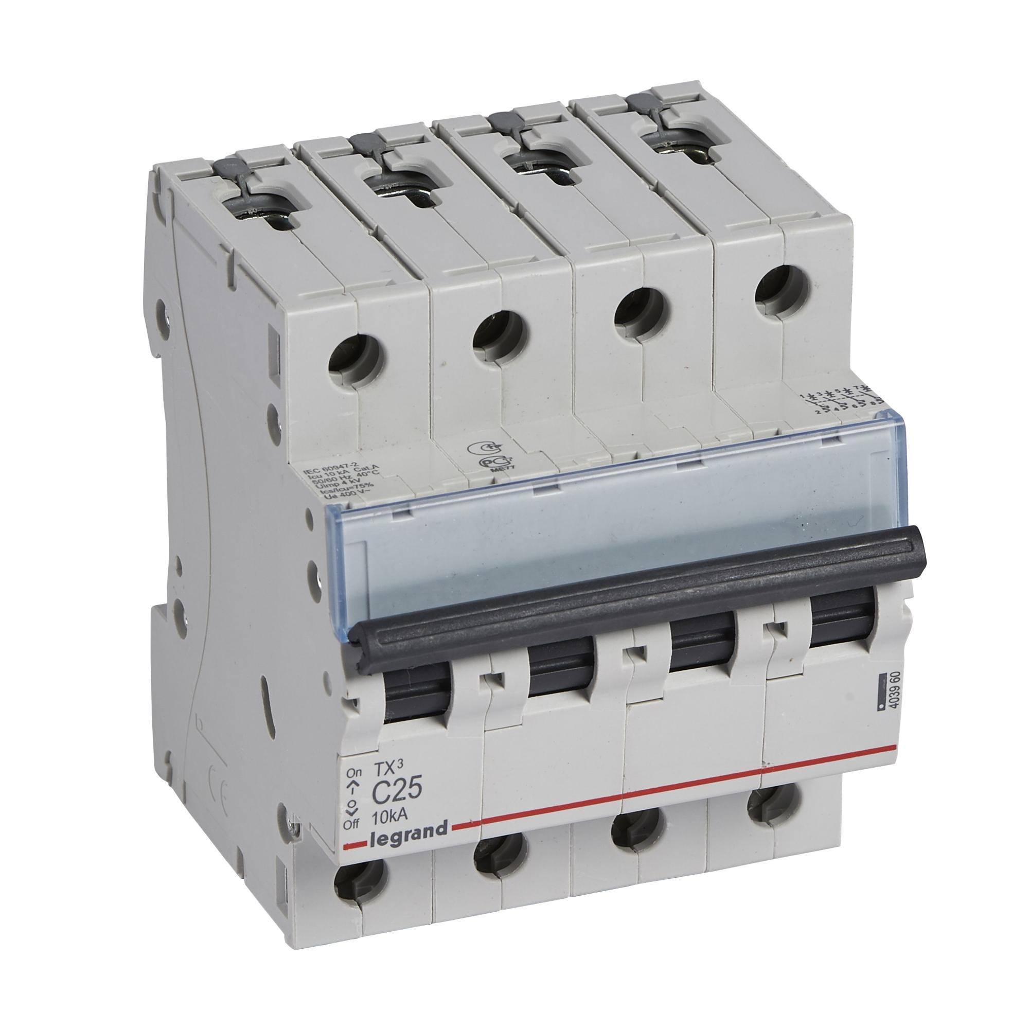 Legrand TX3 Автоматический выключатель 4P 25A (С) 6000/10kA от производителя Legrand. Артикул производителя 403960.