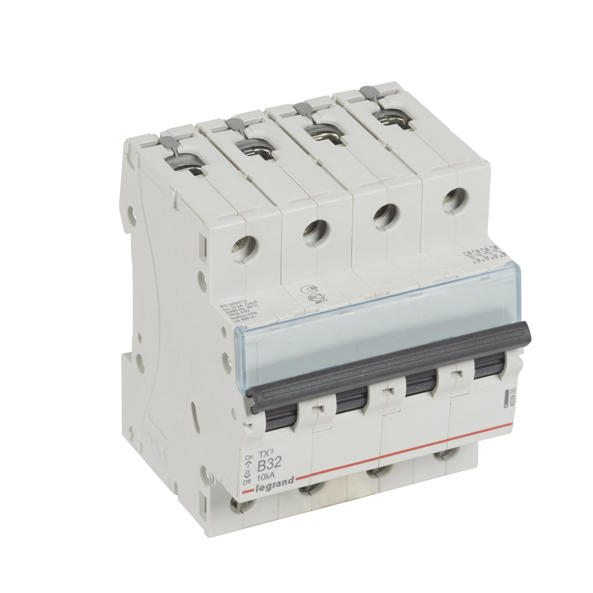 Legrand TX3 Автоматический выключатель 4P 32A (B) 6000/10kA от производителя Legrand. Артикул производителя 403905.