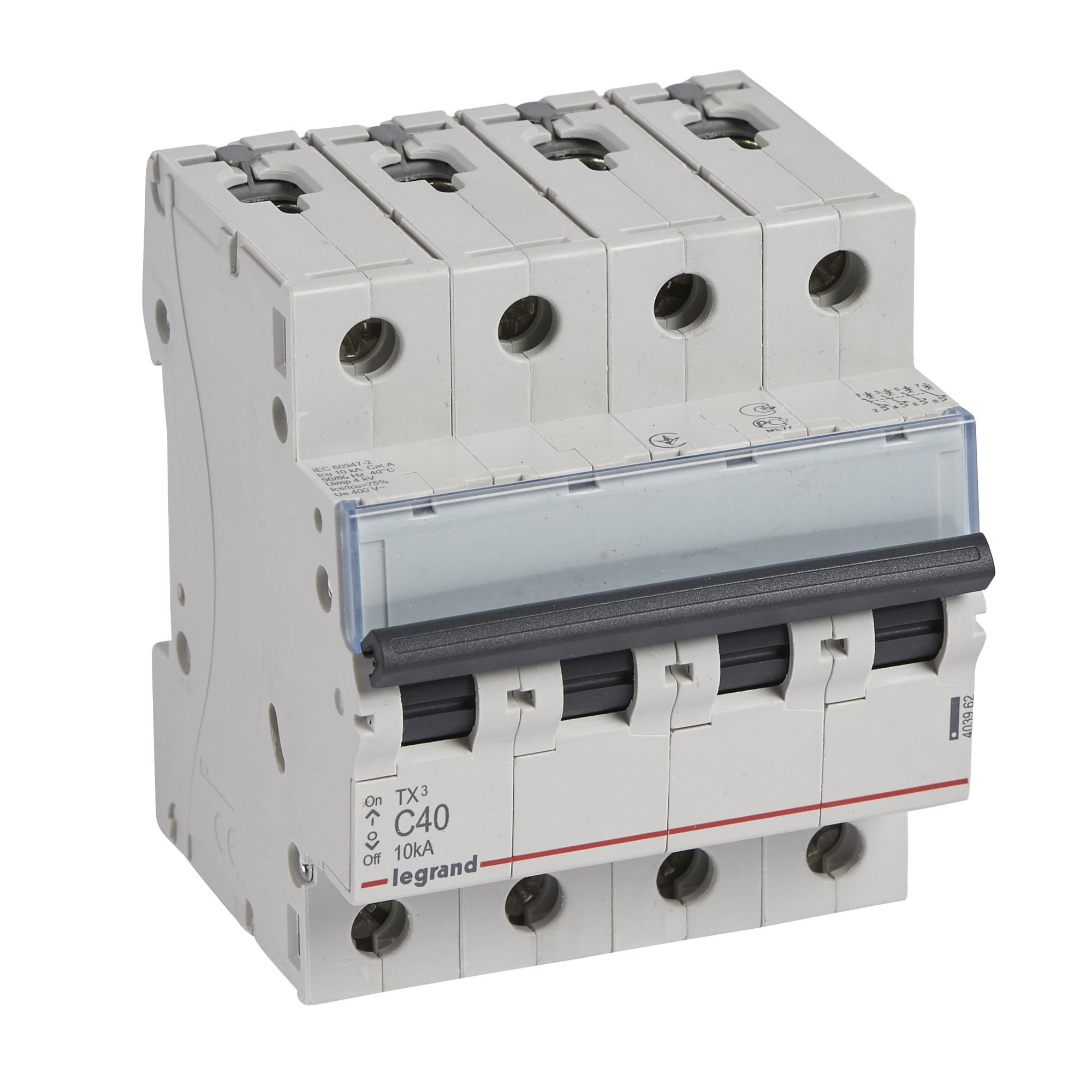 Legrand TX3 Автоматический выключатель 4P 40A (С) 6000/10kA от производителя Legrand. Артикул производителя 403962.