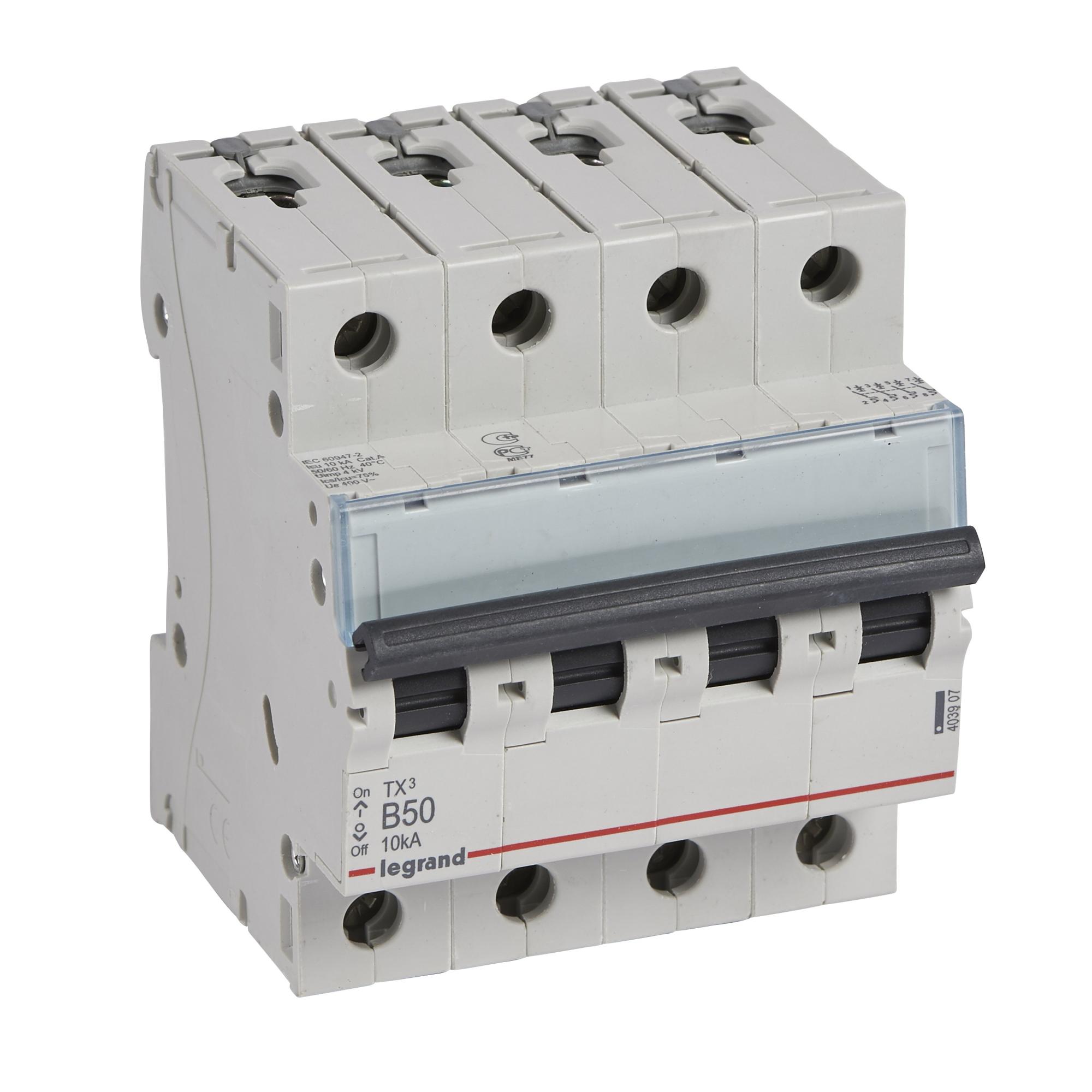 Legrand TX3 Автоматический выключатель 4P 50A (B) 6000/10kA от производителя Legrand. Артикул производителя 403907.
