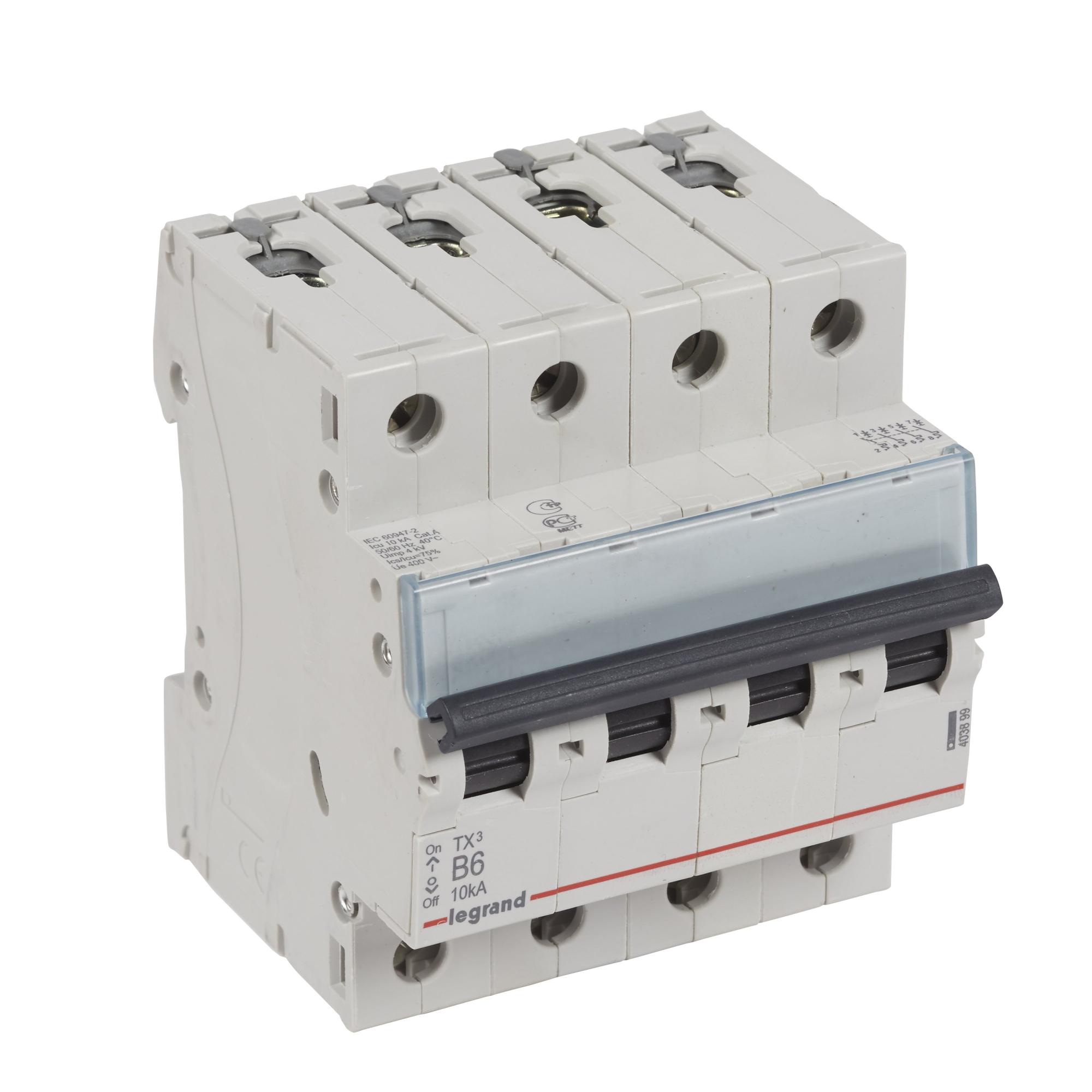 Legrand TX3 Автоматический выключатель 4P 6A (B) 6000/10kA от производителя Legrand. Артикул производителя 403899.