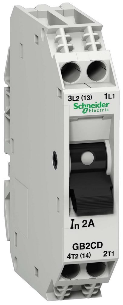 Термомагнитный размыкатель цепей управления, 1П+Н, 4A, Id = 52A. диапазон: TeSys - наименование изделия: TeSys GB2 - краткое название устройства: GB2 - тип устройства или его аксессуаров: автоматический выключатель - область применения: управление - тип сети: пер./пост. тока - категория применения : DC-12 в соответствии с IEC 60947-5-1, DC-13 в соответствии с IEC 60947-5-1, категория А в соответствии с IEC 60947-2 - отключающая способность: Icu = 1.5 кА в 24 В постоянный ток в соответствии с IEC 60947-2, Icu = 1 кА в 48 V постоянный ток в соответствии с IEC 60947-2, Icu = 3 кА в 230/240 V переменный ток 50/60 Гц в соответствии с IEC 60947-2, Icu = 6 кА в 110 В переменный ток 50/60 Гц в соответствии с IEC 60947-2 - [Icu] номинальная предельная наибольшая отключающая способность (на к.з.): 50 % в 110 В переменный ток 50/60 Гц в соответствии с IEC 60947-2, 50 % в 230/240 V переменный ток 50/60 Гц в соответствии с IEC 60947-2 - технология блока контроля и управления: термомагнитный - ток срабатывания электромагни