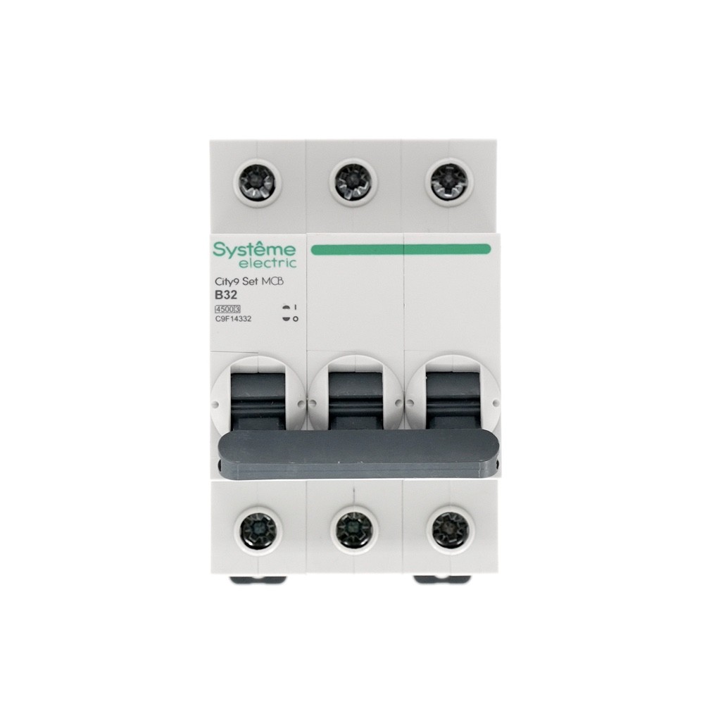 Автоматический выключатель серии City9 Set Systeme Electric, 3-полюсный, номинальный ток 32 А, характеристика B, Icn = 4.5 кА. Применяется в электрических сетях напряжением 400 В. Предназначен для защиты от перегрузок и токов короткого замыкания. Оснащен механизмом «мгновенной коммутации». Ударопрочный корпус из специального пластика с 6 металлическими заклепками. Безопасные клеммы исключают попадание кабелей в заклеммное пространство.