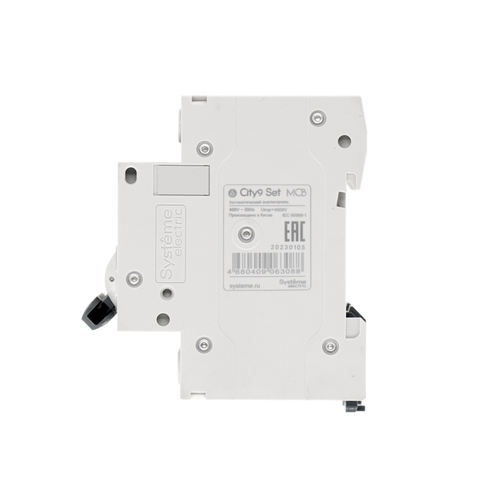 Автоматический выключатель серии City9 Set Systeme Electric, 3-полюсный, номинальный ток 6 А, характеристика B, Icn = 4.5 кА. Применяется в электрических сетях напряжением 400 В. Предназначен для защиты от перегрузок и токов короткого замыкания. Оснащен механизмом «мгновенной коммутации». Ударопрочный корпус из специального пластика с 6 металлическими заклепками. Безопасные клеммы исключают попадание кабелей в заклеммное пространство.