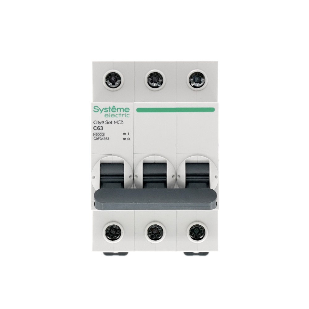 Автоматический выключатель серии City9 Set Systeme Electric, 3-полюсный, номинальный ток 63 А, характеристика С, Icn = 4.5 кА. Применяется в электрических сетях напряжением 400 В. Предназначен для защиты от перегрузок и токов короткого замыкания. Оснащен механизмом «мгновенной коммутации». Ударопрочный корпус из специального пластика с 6 металлическими заклепками. Безопасные клеммы исключают попадание кабелей в заклеммное пространство.
