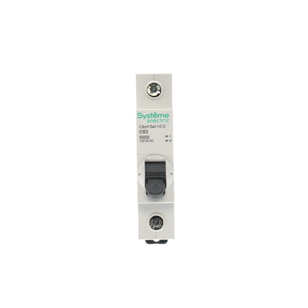 Автоматический выключатель серии City9 Set Systeme Electric, 1-полюсный, номинальный ток 63 А, характеристика С, Icn = 6 кА. Применяется в электрических сетях напряжением 230 В. Предназначен для защиты от перегрузок и токов короткого замыкания. Оснащен механизмом «мгновенной коммутации». Ударопрочный корпус из специального пластика с 6 металлическими заклепками. Безопасные клеммы исключают попадание кабелей в заклеммное пространство.