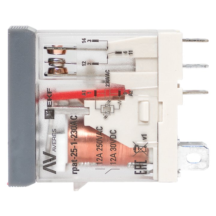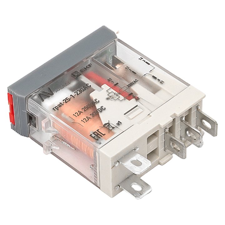 —EKF Averes Реле промежуточное с кнопкой и мех. Индикацией RPAt 25/1 12A 230В AC, арт rpat-25-1-230AC