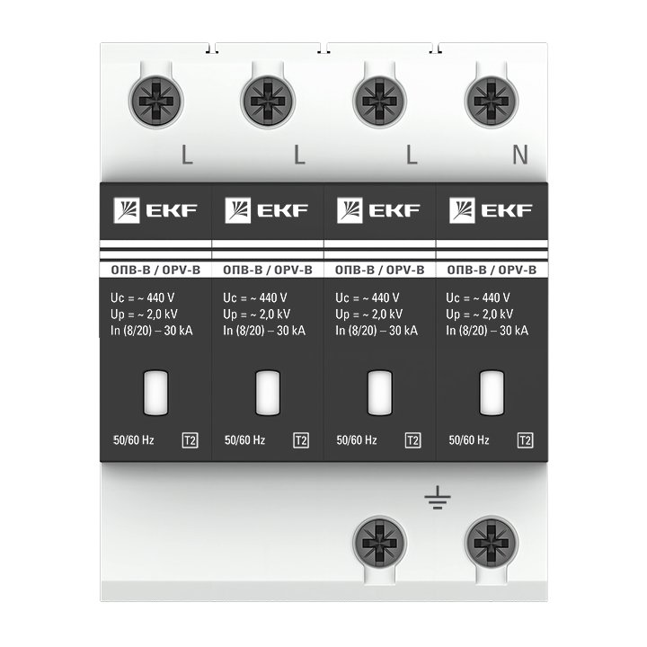 УЗИПы серии ОПВ относятся к классу II и применяются для защиты токораспределительной сети объекта от коммутационных помех или как вторая ступень защиты при ударе молнии. Тип "B" характеризуется номинальным разрядным током 30кА, максимальным разрядным током 60кА с формой волны 8/20 мкс.