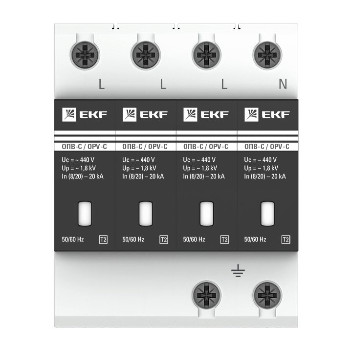 EKF PROxima Ограничитель импульсных напряжений ОПВ-C/4P In 20кА 400В с сигн., арт opv-c4