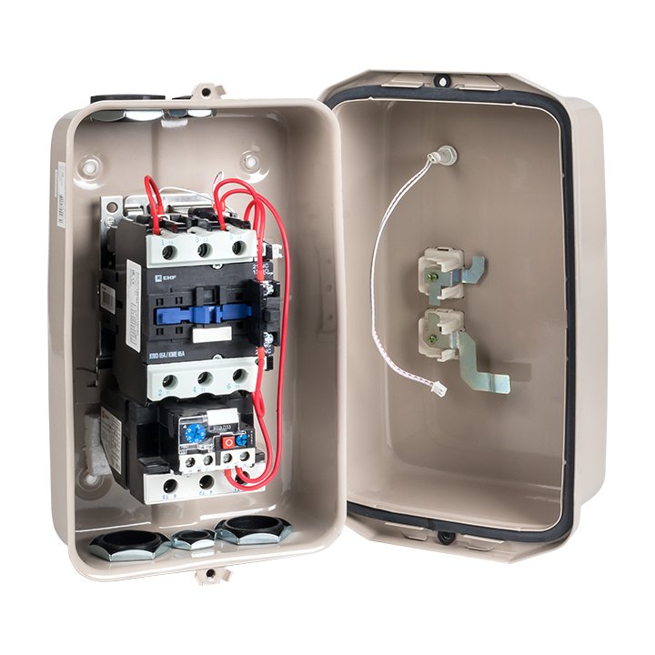 Пускатель магнитный КМЭ EKF PROxima является комплектным устройством, состоящим из малогабаритного контактора КМЭ, теплового реле РТЭ, оболочки с сальниками и кнопок управления. Пускатели предназначены для дистанционного пуска непосредственным подключением к сети и остановки трехфазных асинхронных электродвигателей с короткозамкнутым ротором на напряжение переменного тока до 400 В, а также для защиты электродвигателей от перегрузок недопустимой продолжительности и сверхтоков, возникающих при обрыве одной из фаз. При применении контакторов КМЭ 0910 – КМЭ 3210 используется пластиковый корпус, контакторов КМЭ 4011 – КМЭ 9511 – металлическая оболочка.