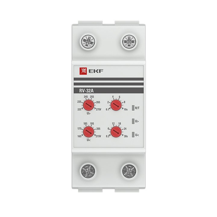 Реле напряжения EKF PROxima являются микропроцессорным устройством и предназначено для постоянного контроля напряжения в однофазных и трехфазных сетях (MRVA-3) переменного тока, для защиты электроустановок от перепадов напряжения. Реле контролирует напряжение в сети в установленном диапазоне и при выходе напряжения за пределы диапазона отключает оборудование от сети электропитания с заданной выдержкой времени. Установка диапазона напряжения и времени срабатывания производится с помощью поворотных регуляторов (RV-5A, RV-32F) либо при помощи кнопок (MRV, MRVA, MRVs) расположенных на лицевой поверхности реле. Реле напряжения EKF PROxima являются микропроцессорным устройством и предназначено для постоянного контроля напряжения в однофазных и трехфазных сетях (MRVA-3) переменного тока, для защиты электроустановок от перепадов напряжения. Реле контролирует напряжение в сети в установленном диапазоне и при выходе напряжения за пределы диапазона отключает оборудование от сети электропитания с заданной выдержкой време