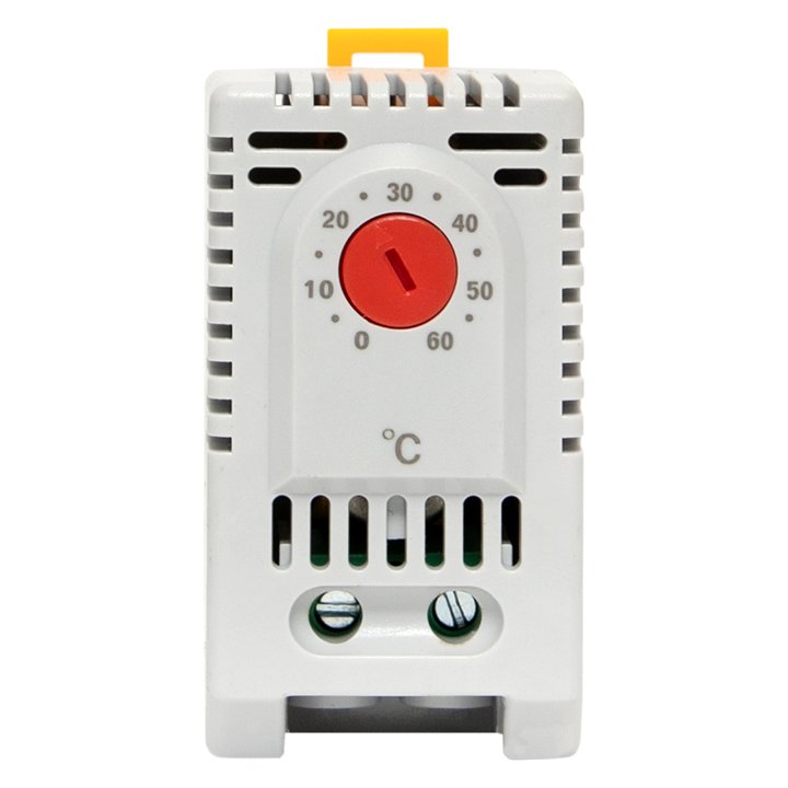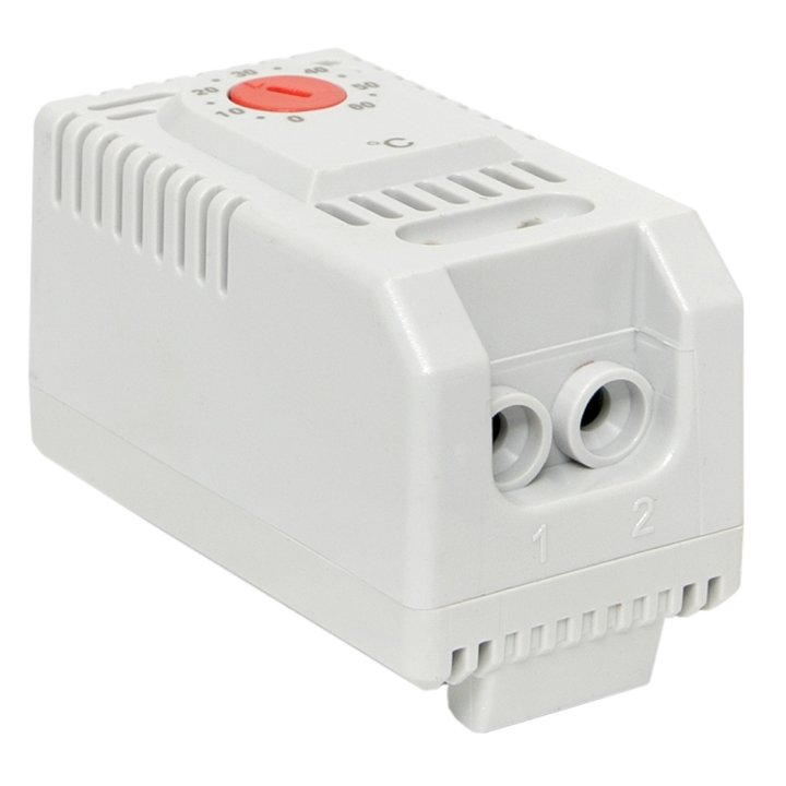 Термостат предназначен для поддержания фиксированной температуры внутри электрощитов. Нормально-замкнутый контакт предназначен для управления исполнительными устройствами (обогревателями), а также для оповещения о превышении предельной температуры.