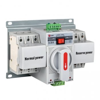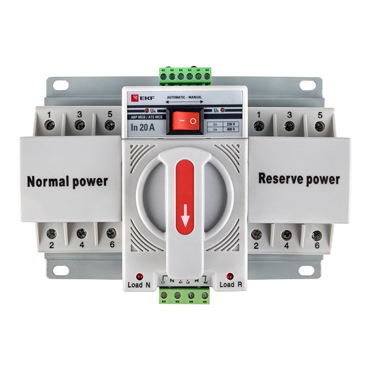 Устройство АВР МСВ EKF PROxima предназначено для обеспечения резервным электроснабжением нагрузки, подключенной к системе электроснабжения, имеющей основной и резервный вводы. Устройство АВР автоматически подключает резервную линию питания в случае пропадания напряжения на основной линии. Устройство выполнено в виде моноблока и состоит из блока управления и двух модульных автоматических выключателей. На блоке управления имеется рычаг ручного переключения. Такая конструкция позволяет уменьшить габариты и площадь установки АВР.