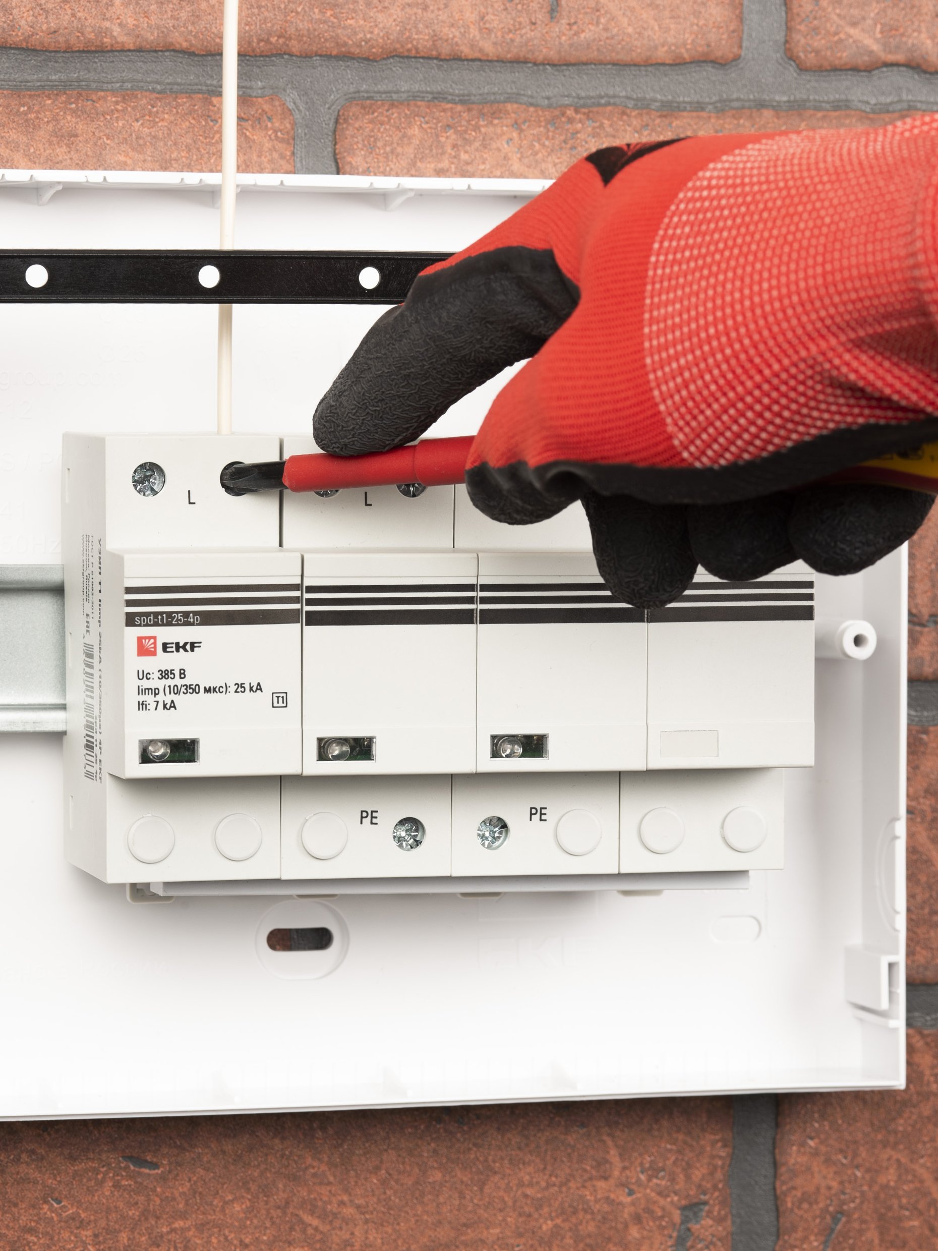 УЗИП Тип 1 (класс 1) применяются для защиты от больших импульсных перенапряжений (удар молнии, мощный бросок напряжения в режиме КЗ). Устанавливаются в местах возможного прямого попадания молнии в ВЛ электропитания или в качестве 1-ой ступени защиты в системе внешней молниезащиты объекта. Испытание и нормирование УЗИП класса I осуществляется импульсным током Iimp – 10/350 мкс, номинальным разрядным током In – 8/20 мкс, импульсным напряжением – 1,2/50 мкс. Устанавливаются УЗИП класса 1 к примеру, в щит учета на опоре, снаружи дома (до счетчика), в главном распределительном щите объекта (ГРЩ) или во вводном-распределительном устройстве (ВРУ).