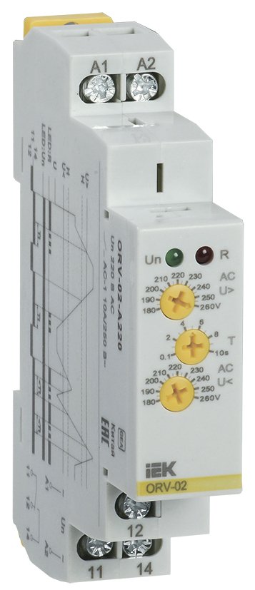 —IEK ONI Реле повышнапряжения ORV 1ф 220 В AC, арт ORV-02-A220