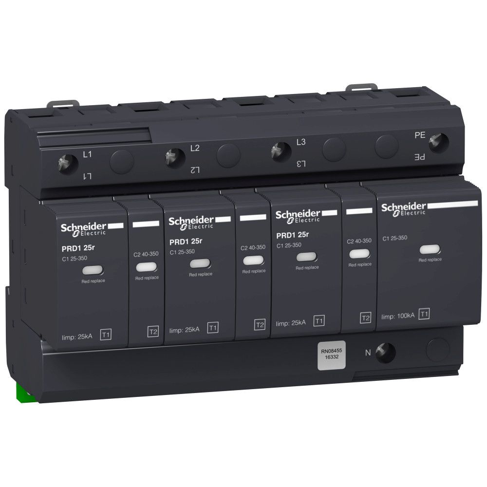 PRD 1 25r ОПН со сменнными картриджами 3p+N. диапазон: Multi 9 - тип устройства или его аксессуаров: грозозащитный разрядник со вставным патроном - краткое название устройства: PRD1 25r - область применения: распределение - состав сигнальных контактов: 1 SD (1 переключающ.) - тип искрового разрядника: электрическая распределительная сеть - система заземления: TN-S, TT. Преимущества: .. применения: .. Преимущества: .. применения: - Защита электроустановок в любых промышленных и общественных зданиях от индуктированных перенапряжений и кондуктивных импульсных помех, вызванных непрямыми ударами молний.. Преимущества: Эффективность, достойная Вас!. Усиленная безопасность и непрерывность работы благодаря:, сертифицированной координации срабатывания с автоматическими выключателями,, надежным соединениям ,, и удаленному мониторингу состояния устройства защиты.... применения: - Защита электроустановок в любых промышленных и общественных зданиях от индуктированных перенапряжений и кондуктивных импульсных помех, вызван