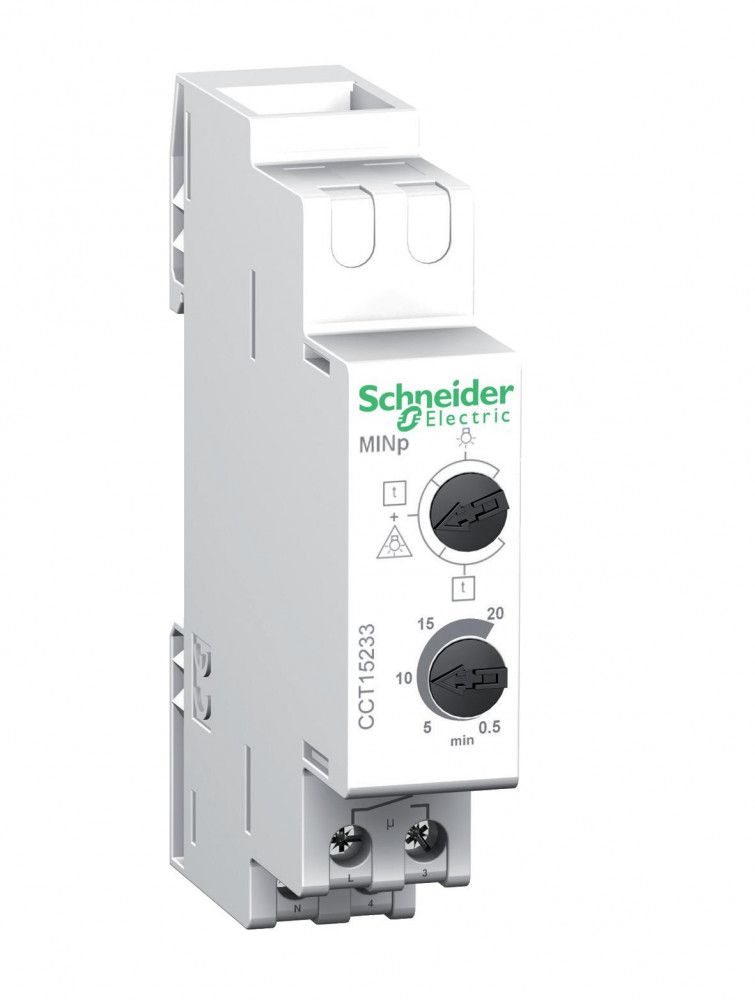 Реле с выдержкой времени MINP. диапазон: Acti 9 - краткое название устройства: MINp - тип устройства или его аксессуаров: бесшумный электронный таймер - совместимость изделий: механическая совместимость с шинными разводками для электрической системы - доступные функции: аварийная сигнализация выключения. Преимущества: Света хватит!. Таймеры MIN обеспечивают как экономию, так и комфорт:, Их легко использовать путем нажатия кнопки управления., Их просто установить (механическая совместимость с электрической объединяющей шиной распределения).... применения: Благодаря возможности подключения к нескольким кнопкам управления они идеально подходят для управления освещением на лестничных клетках. Они также могут быть использованы для освещения коридоров в зданиях, в гаражах, для вентиляции в туалете и т. д....